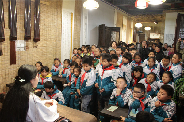 同学们不但对家乡的手工艺品有了更多的了解,还对我馆新增的民俗文化展演活动产生了浓厚的兴趣,他们在书茶厅询问说书艺人说唱的是哪段历史故事;在古琴厅静静的聆听悠扬的琴声。学生通过此次参观,看到了、听到了更多家乡的动态的、静态的民俗文化,并逐渐将民俗文化传承理解的更加透彻。这一生动的形式受到了家长和学生的欢迎。此次活动不仅丰富了同学们的精神文化生活、开阔了同学们的视野,也极大地激发了同学们的民族自豪感和爱国主义热情。