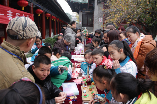 2016年11月9日,安阳民俗博物馆在古建全面维修之后重新开馆之际,举办了“家乡传统文化亲历之旅——我的家乡我的梦”活动,以焕然一新的面貌迎来了首批百余名小学生观众。同学们在干净整洁的环境中尽情领略彰德府城隍庙这座极富民俗特色和历史文化的明清建筑风情,感受古典建筑所承载的物质文化遗产魅力的同时,参观了充满生活气息和时代穿越感的民俗文化展览,让未成年人有一次重新感知和近距离接触民俗文化的机会,我们还邀请到了剪纸、麦秆画、吉祥鼓和面人等著名的民间艺人进行现场展演,将民间艺术课堂开设到博物馆里,和师生们互动演绎丰富多彩的民间艺术。