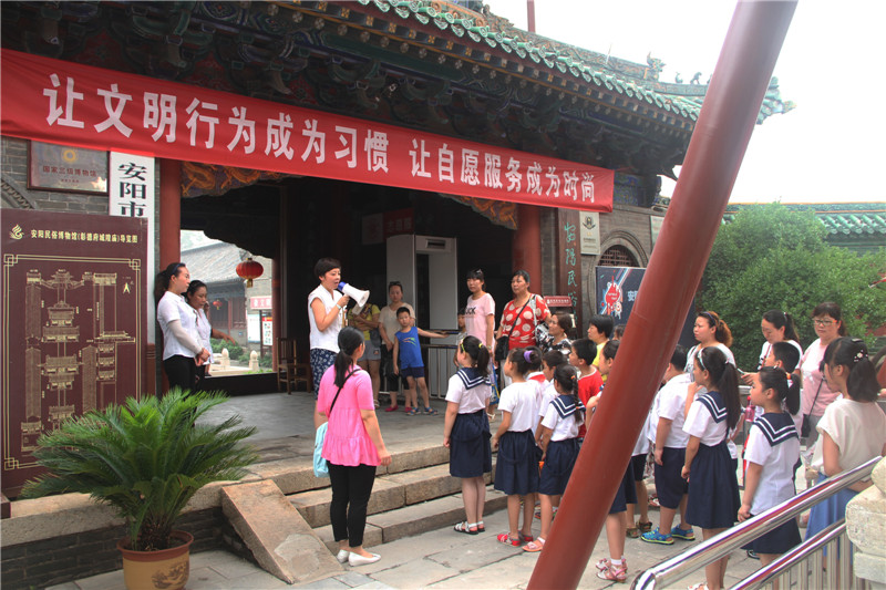 为了加强对青少年的优秀传统文化教育,培养传统文化的继承者和弘扬者,推动文化传承创新,让青少年更好的参与到宣传保护优秀传统文化的行列。2016年7月23日,安阳民俗博物馆开展“第二课堂”,举办了助力中国梦“家乡传统文化亲历之旅”暑期活动,市人民大道小学部分学生参加了此次活动。