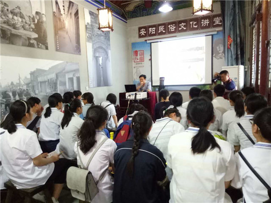 其次,以“请进来”的方式,邀请三十七中学生开展第二课堂,来我馆参加文化遗产日主题活动,为他们提供免费讲解,让他们尽情领略彰德府城隍庙这座极富民俗特色和历史文化的明清建筑风情,感受古典建筑所承载的物质文化遗产魅力;走进“家珍——安阳非物质文化遗产展”,让他们对这些口头文学、民间舞蹈、民间美术、传统手工艺等以生活礼仪和民俗节庆为表现形式的文化空间,有一次重新感知和近距离接触的机会;参观我市美术家们精心创作的艺术作品《安阳市第九届美术作品展》,作品既有传统文化精髓,又显现代艺术风貌,彰显鲜明的个人风格。 这些作品定将带给观众思想的启迪和艺术的享受。最后聆听了我市中国古琴学会会员、古琴艺术专家王献东为观众和学生讲解《古琴艺术赏析》讲座,活态传承这项优秀的世界非物质文化遗产。